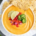 This vegan nacho cheese has the perfect cheesy flavor and you can eat it as a dip, mix it with pasta, or drizzle it over veggies. It's made without cashews and it's oil-free, gluten-free, nut-free, and ready to eat in 30 minutes!